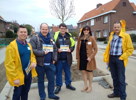 Dit weekend was een ploeg van N-VA Herentals op bezoek in de Engelse Wijk. We gingen bij de bewoners langs om ons huis-aan-huisblaadje persoonlijk te bezorgen en polshoogte te nemen van het eindresultaat van de heraanleg van de wijk. Dat resulaat kan blijkbaar op weinig applaus rekenen: veel te weinig inspraak op voorhand, een zeer slordig verloop van de werken, de levensgevaarlijke varkensruggen, veel te groot uitgevallen plantenbakken ... En waar kunnen de inwoners hun vuilbakken kwijt? Dan houdt iedereen nog zijn hart vast voor de nieuwe verkeerssituatie. Die ziet er misschien goed uit op papier, maar wat brengt de realiteit? Kunnen fietsers, parkeerende ouders en bussen (die de bochten amper kunen nemen) zich op hetzelfde moment in het verkeer wagen? De N-VA volgt samen met de buurt de situatie verder op de voet!